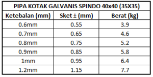 PIPA KOTAK GALVANIS SPINDO 40 X 40
