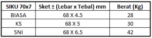 Besi Siku memiliki sudut 90 derajat, dan memiliki lempengan berbentuk vertical dan horizontal yang berbentuk satu sama lain. Besi ini juga dikenal dengan nama angle bar atau L-bracket. Besi siku sangat popular digunakan dalam dunia konstruksi dan bangunan karena kegunaannya yang sangat banyak. Besi siku biasanya sering digunakan untuk membuat rak-rak, tower air, pagar, tangga, tiang-tiang, penguat struktur, dan lain-lain.